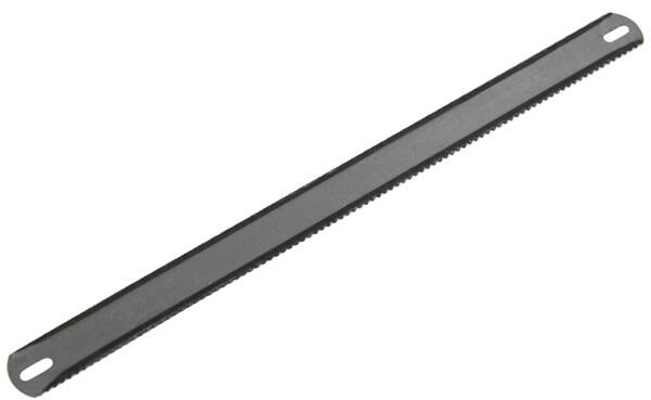 Kétoldalas fűrészlap. A fűrészlap egyik oldala fémre való, a másik oldala fa vágására van fogazva.
