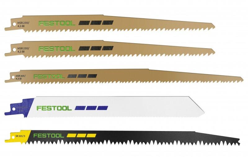 • A Festool színkódolásával gyorsan megtalálhatja a megfelelő fűrészlapot: sárga famegmunkáláshoz, kék fémmegmunkáláshoz