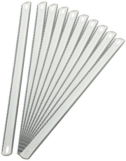 Fűrészlapok 18 cm, 10 dbFedezze fel a minőséget és sokoldalúságot a fűrészlap készlettel, amelyet fűrészekhez terveztek. Ezek a kiváló minőségű fűrészlapok ideális választást jelentenek minden mesterember vagy otthoni javítások iránt lelkesedő számára, aki értékeli az erőt és a pontosságot a vágás során. A fűrészlapok úgy lettek kialakítva, hogy megfeleljenek a hatékonyság, gyorsaság és pontosság követelményeinek. Tulajdonságok és előnyök:Univerzális hosszúság: 18 cm A fűrészlapok 18 cm hosszúságra vannak tervezve, aminek köszönhetően ideálisak a legkülönfélébb alkalmazásokhoz, a fa, a fém és a műanyag vágásától kezdve. Készlet 10 db: Töltse fel fűrészlapokkal hosszú időre. A készlet 10 darabot tartalmaz, ami lehetővé teszi, hogy nagyobb projektekkel is könnyedén megbirkózzon anélkül, hogy gyakran kellene szerszámot cserélni. Kiváló minőségű anyag és kivitelezés: A fűrészlapok magas minőségű anyagokból készülnek, amelyek hosszú élettartamot és a sérülésekkel szembeni ellenállást